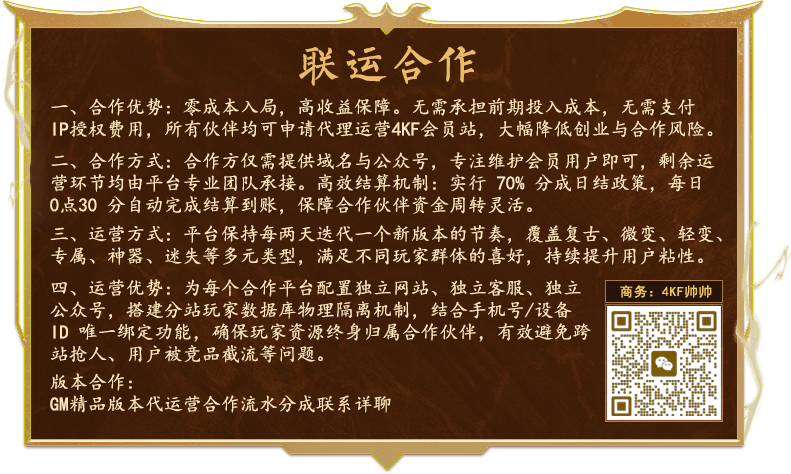 - ●经典专属●无赞助回馈●装备全靠打●货币全可打!